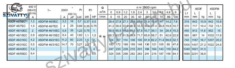 A Calpeda 4SDFM 46/15EC búvárszivattyú gyártása során minden felhasznált alapanyag csak és kizárólag kiváló minőségű lehet, ez alapelv. Ennek köszönhetően a szivattyú hidraulika akár 300 g/m3 homoktűrő képességgel is rendelkezhet. A Calpeda 4 colos csőkút szivattyúkat előszeretettel használják lakóházak vízellátására, mezőgazdaságban gyümölcs és zöldség öntözéshez. A nagyobb emelőmagasságú és vízhozamú Calpeda 4SD szivattyúkat iparterületek vízellátására, tüzi víztározók biztonsági szivattyújának, de akár hidroglóbusz feltöltésére is alkalmasak. Mégis jellemzően fúrt kutakban alkalmazzák leggyakrabban. A minimum kútátmérő 110 mm. Nagyobb , hosszabb típusoknál fontos, hogy a kút egyenes legyen, és a perforációk ne akadályozzák a lehelyezést. Ebben az esetben inkább legyen 125 mm-es a kút átmérő. A Calpeda 4SDFM 46/15EC búvárszivattyú külsőindítókondenzátoros modell. A működtetéshez indítódoboz szükséges. Az indítódoboz választékunkat a szivattyú vezérlés, indítódoboz menüpont alatt találja, ahol motorteljesítmény alapján választhat megfelelő indítódobozt.