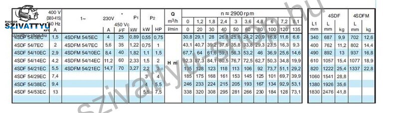 A Calpeda 4SDFM 54/10EC búvárszivattyú gyártása során minden felhasznált alapanyag csak és kizárólag kiváló minőségű lehet, ez alapelv. Ennek köszönhetően a szivattyú hidraulika akár 300 g/m3 homoktűrő képességgel is rendelkezhet. A Calpeda 4 colos csőkút szivattyúkat előszeretettel használják lakóházak vízellátására, mezőgazdaságban gyümölcs és zöldség öntözéshez. A nagyobb emelőmagasságú és vízhozamú Calpeda 4SD szivattyúkat iparterületek vízellátására, tüzi víztározók biztonsági szivattyújának, de akár hidroglóbusz feltöltésére is alkalmasak. Mégis jellemzően fúrt kutakban alkalmazzák leggyakrabban. A minimum kútátmérő 110 mm. Nagyobb , hosszabb típusoknál fontos, hogy a kút egyenes legyen, és a perforációk ne akadályozzák a lehelyezést. Ebben az esetben inkább legyen 125 mm-es a kút átmérő. A Calpeda 4SDFM 54/10EC búvárszivattyú külsőindítókondenzátoros modell. A működtetéshez indítódoboz szükséges. Az indítódoboz választékunkat a szivattyú vezérlés, indítódoboz menüpont alatt találja, ahol motorteljesítmény alapján választhat megfelelő indítódobozt.
