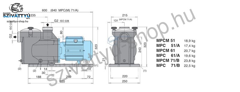 ellenáll a korróziónak és a homok eróziónak. Diffurzor fedél thermoplasticból, a járókerék PRO-GF30 norylból. Az előszűrő fedele átlátszó polikarbonát LEXAN. Az előszűrőben található szűrőkosár anyaga polipropilén. A Calpeda MPCM 71/A motorja egyfázisú 230V-os réztekercselésű, F szigeteléssel és IPX4 védettséggel rendelkezik, beépített termikus hővédelemmel. A motor tér védelmét vízbehatolás ellen kiváló minőségű szén-kerámia FPM tengelytömítés biztosítja. Ez a medence szivattyú maximum + 60 fokos vízhőmérsékletig használható. A Calpeda MPCM 71/A szívóoldali csatlakozása 2 coll belsőmenet, a nyomóoldali csatlakozása szintén 2 coll belső menet. Mindkét csatlakozás AISI 304 rozsdamentes acélgyűrűvel erősítve. A szivattyú motortengelye tartós, erős AISI 303 rozsdamentes acélból.