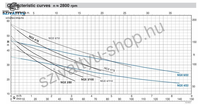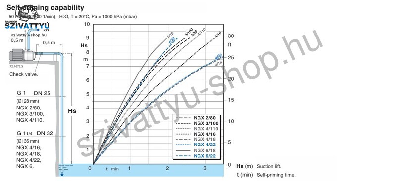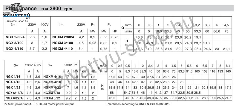 A Calpeda NGX önfelszívó jet rendszerű kerti szivattyú család kifejezetten lakossági felhasználásra készült, magas minőségű alapanyagok felhasználásával a tartósság, megbizhatóság jegyében. A Calpeda nem enged a minőségből! Ennek bizony ára van. Nem kíván az olcsó kerti szivattyúk sorába csatlakozni és a minőségéből engedni. AISI 304 rozsdamentes szívóházzal készül, motor tengelye pedig AISI 303 rozsdamentes acélból. Tengelytömítése, mely vízbehatolás ellen védi a motorteret karbon-kerámia-NBR kombináció, mely rendkívül jó kopásállóságú. A Calpeda NGXm 6/22 lapátkereke rézötvözetből, diffurzor-ejektor egysége PPO-GF20 norylból készülnek, melyek szintén kiváló minőségüek. Szívó oldali csatlakozása 5/4 coll, nyomóoldali csatlakozása 1 colos belső menet. Az egyfázisú 230V-os Calpeda NGXm 6/22 motorja 1500W-os és termikus hővédelemmel is rendelkezik. Motorja F szigeteléssel és IP 54 védelmi fokozattal rendelkezik. Maximum +35 fokos tiszta víz szivattyúzására alkalmas, a környezeti hőmérséklet maximuma pedig +40 fok. Maximális szívómélysége 9 méter. Nyomásfokozás esetén a szivattyúházban maximum 8 bar lehet! A Calpeda NGXm 6/22 kerti szivattyú maximális szállítókapacitása 140 liter/perc, mig függőleges nyomómagassága maximum 46,5 méter. Azaz maximum 4,65 bar nyomásra képes.