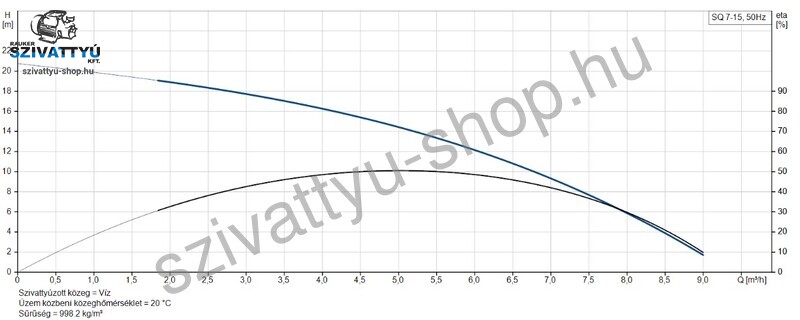 A Grundfos SQ csőkút szivattyú búvárszivattyú ideális választás öntözésre, locsolásra, vagy feltöltő szivattyúnak. A Grundfos SQ 7-15 búvárszivattyú maximális emelőmagassága 20,8 méter. A maximális vízszállítása 150 liter/perc, így ideális kis mélységű fúrt kutakhoz.
