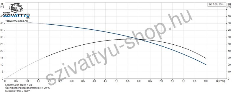 A Grundfos SQ 7-30 búvárszivattyú műszaki adatai:
