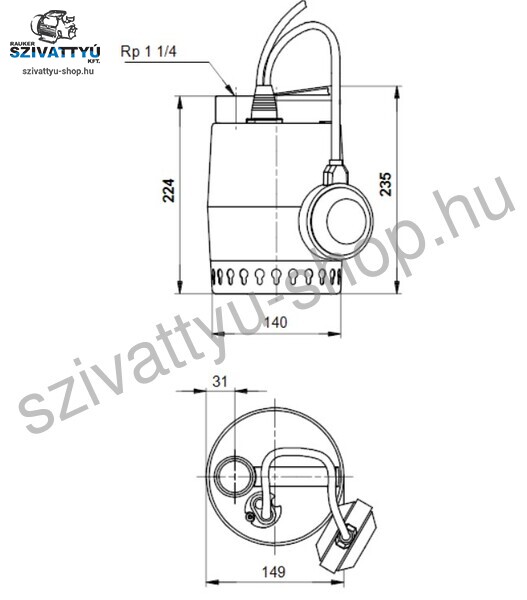 Merülő vízmentesítő szivattyú tiszta vízre úszókapcsolóval. Grundfos Unilift KP 350 A1 10M zsomszivattyú kiváló minőségben, maximum 10 mm-es szennyeződésig. Teljesen rozsdamentes modell. Gyári tápkábel 10 méter.