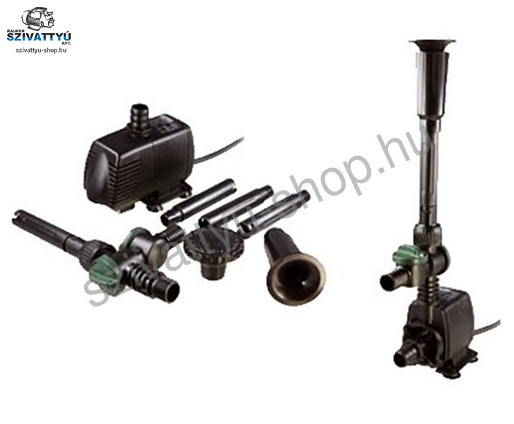 Kis teljesítményű kerti tó szivattyú, szökőkút szivattyú többféle vizijáték elemmel. Hailea HX-8860F szökőkút szivattyú szivacsos előszűrővel.