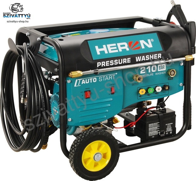 A benzinmotoros HERON HPW 210 magasnyomású mosót a különösen nagy kimeneti víznyomás, 210 bar jellemzi, ami garantálja a nagy tisztítási teljesítményt. A magasnyomású mosóval kő, fa, fém, műanyag stb. felületeket (pl. járdát, teraszt, épület homlokzatot, kerti