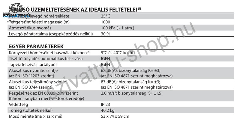 A mosó automatikusan adagolja (felszívja) a hatékonyabb tisztítást biztosító tisztító folyadékot. A vízszivattyú funkció lehetővé teszi, hogy a berendezés ott is használható, ahol nincs vízvezeték (víz kiszívása vödörből vagy hordóból).