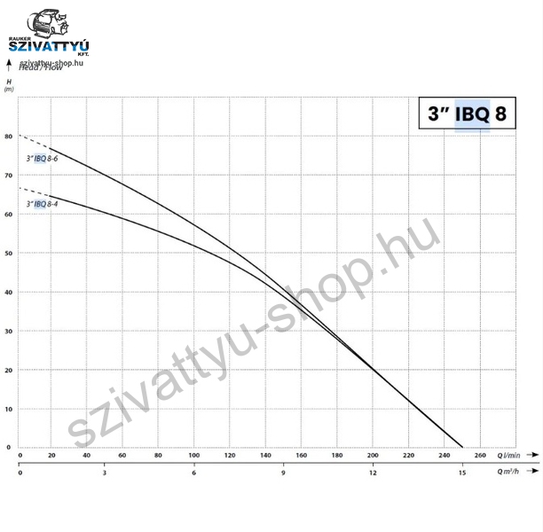Az IBO 3IBQ 8-4 többfokozatú búvárszivattyút, csőkút szivattyút fúrt kutakban és nyílt vízi tározókban való működésre tervezték. Más csőbúvárszivattyúkkal ellentétben az IBQ fejlett energiatakarékos motorokkal rendelkezik, állandó mágnessel és frekvenciaváltóval. Ennek eredményeként a motor max. 6000 ford./perc fordulatszámot és nagyon nagy teljesítményt ér el. Az állandó mágnesekkel és inverterrel ellátott motor kialakításának számos előnye van a hagyományos szivattyúkkal szemben. Ezek a következőek. Energiamegtakarítás a motor és a szivattyú nagy teljesítményének köszönhetően. Ugyanazon hidraulikus nyomás és teljesítményparaméterek elérésével az IBQ szivattyúk olyan motorokkal is használhatók, amelyek körülbelül 20 %-kal kisebbek, mint a hagyományos szivattyúkban használt motorok. Szárazonfutás-elleni védelem. Az inverter elektronikája szabályozza a motor áramfelvételét. Ha specifikus szárazonfutást észlel, a motor leáll. Egy bizonyos idő elteltével a szivattyú megpróbál automatikusan újra indulni, és működése folytatódik,ha a víz beáramlás helyreáll. Lágy-indítás, aminek következtében a vízütésnek a hidraulikus rendszerre gyakorolt negatív hatása megszűnik, ezzel pedig jelentősen csökken a motor és a szivattyú mechanikai kopása, valamint a lágy indításnak köszönhetően a bekapcsolási áram nincs hatással az elektromos hálózatra. A hagyományos megoldásoknál a motor állandó működési paramétereinek eléréséhez gyors indításra van szükség. Indításkor a motor a normál üzemi áram többszörösét veszi fel a működés első néhány másodpercében (bekapcsolási áram). Ez feszültségingadozásokat eredményezhet az elektromos hálózatban, ami befolyásolhatja a hálózathoz csatlakoztatott egyéb eszközök működését, kiolvadhatnak a biztosítékok, és kiéghetnek a vezérlőegységek elektromos csatlakozásai. Általában a szivattyú hidraulikus paraméterei indításkor pillanatnyilag magasabbak a névlegesnél, ami azt jelenti, hogy az üzemelés első másodperceiben a névlegesnél magasabb paraméterekkel (nyomás, áramlás) rendelkező, adott hálózatra tervezett víz kerül a rendszerbe. Ezt hidraulikus sokknak nevezik. Az ismételt hidraulikus sokk a vízellátó rendszer hidraulikus alkatrészeinek túlzott kopásához vezet. Egy másik hátrány, amelyet a lágy-indítás megszüntet, a motor mechanikai és elektromos kopása. A vízütés fokozott mechanikai terhelést okoz a motoron és a szivattyún, a nagy indítóáram pedig gyengíti a motor belső szigetelését. A motorok viszonylag nagy feszültségingadozással működhetnek, egyfázisú motoroknál 160-250 V, háromfázisú motoroknál 320-450 V. Az IBQ szivattyúk hagyományos szivattyúkhoz képest kisebb méretei lényegesen alacsonyabb fúrási és szerelési költségeket eredményeznek.