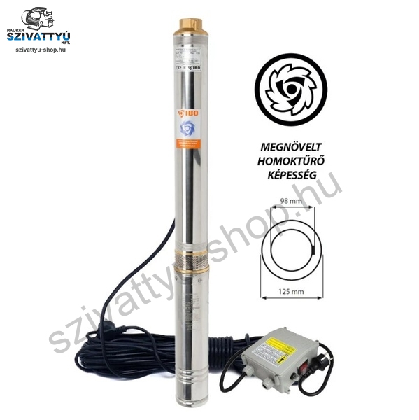 Az IBO 4SDm 4/18 20M búvárszivattyú, csőkútszivattyú négy colos átmérővel (98 mm) rendelkezik, rendkívül magas, 500 g/m3 homoktűrő képességgel bír. Alkalmazhatók egy és többlakásos családi házak, valamint mezőgazdasági gazdaságok vízellátására, továbbá öntözőrendszerek (pl. esőztetők, csepegtető rendszerek) működtetésére is, természetesen a megfelelő méretezés figyelembevételével. A homokkal szembeni fokozott ellenállást az úgynevezett lebegő járókerekek és a kopásálló anyagok, úgymint sárgaréz bemeneti és kimeneti csatlakozással, AISI 304 rozsdamentes acél házzal, tengely és szűrőszűrővel, valamint a kiváló minőségű műanyagból készült járókerekek alkalmazásával érték el. Az IBO 4SDm 4/18 20M egyfázisú motorral, gyári 20 méter tápkábellel, valamint külső indítódobozzal együtt kerül szállításra. Igény esetén természetesen kábelhosszabbítással is kérheti. Erről ügyfélszolgálatunkon kaphat bővebb felvilágosítást. Az IBO 4SDm 4/18 20M egy versenyképes áron kapható jó minőségű négy colos búvárszivattyú, magas homoktűrő képességgel!