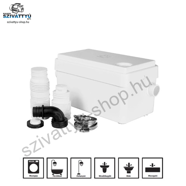 Az IBO AQUASAN MINI átemelő szivattyú telep elsősorban fürdőszobához, konyhához használatos berendezés. Különösen alagsorban, szuterén helyiségekben. A szivattyú hasonló felépítésű, mint a Sanibo mini szivattyúállomás, a kapcsolónak köszönhetően egy teljesen automatikus eszköz, amelyet a fürdőszobákban arra használnak, hogy a mosdóból, zuhanykabinból vagy a konyhába felszerelt mosógépekből vagy mosógatógépből történő víz elvezetését biztosítsa. Ideális fürdőszobákhoz, ahol a mosogató vagy zuhanytálca a szennyvízszivattyún kívül vagy az épületből származó szennyvízcsatorna alatt helyezkedik el. A szivattyú telep csatlakozhat többek között fürdőkád, zuhanyozófülke, mosógép, mosdókagyló, mosogató medence stb. A készülék kicsi mérete és a csendes működése lehetővé teszi a szivattyú diszkrét működését és így például a mosogató alatti szekrénybe is elhelyezhető.