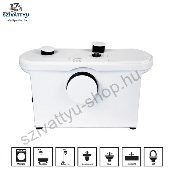 szennyvízszivattyún kívül vagy az épületből származó szennyvízkiáramlás szintje alatt helyezkedik el. A szivattyú kapcsolóval van felszerelve, amely automatikusan vezérli annak működését. Az eszköz feltöltése után a szivattyú automatikusan bekapcsol. Ezen felül a szivattyúnak manuális indítása is van. Kivételesen csendes működés jellemzi, ami ideális otthoni használatra. A készülék további előnye, hogy folyadékokat pumpálhat 90 ° C alatti hőmérsékleten akár 1 percig. A szivattyúállomáshoz csatlakozhat többek között kád, WC és mosógép, valamint és a fel nem használt bemeneti nyílásokat zárókupakkal lezárhatók. A szivattyúkészlet rozsdamentes acél bilincseket és egy zárókupak készletet tartalmaz, ami a készüléket nagyon univerzálissá teszi.