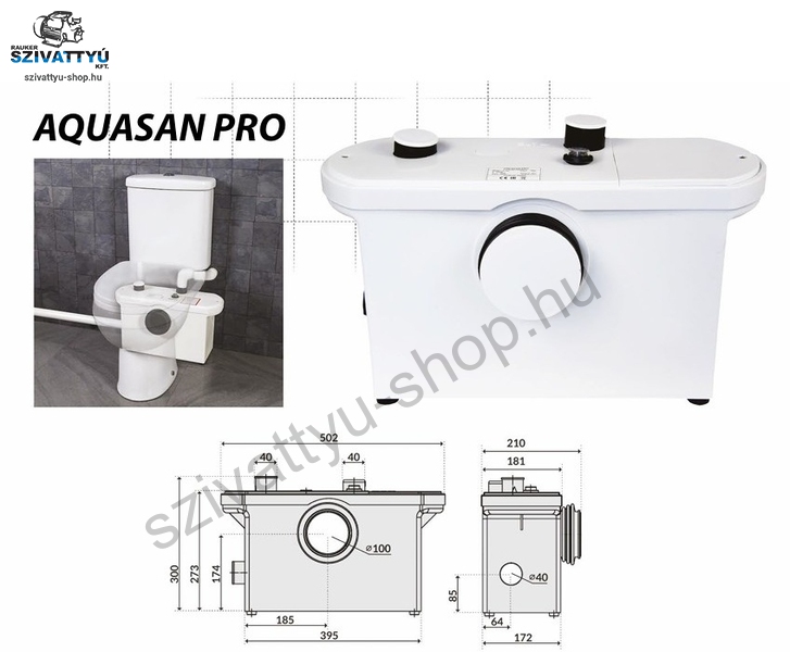 Az IBO AQUASAN PRO WC már évek óta elérhető WC-szivattyúként a piacon, ez a Sanibo sorozat gazdaságos változata. A készüléknek 3 bemeneti nyílása van, az egyik fő 100 mm-es a WC-vel, két 40 mm-es a zuhanytálcához vagy a mosdóhoz, és egy 40 mm-es kimenettel. Ideális fürdőszobákhoz, ahol a WC a