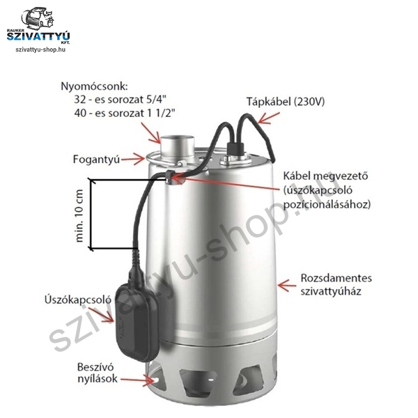 Készüléktípus: merülőszivattyú tiszta és enyhén szennyezett vízhez.