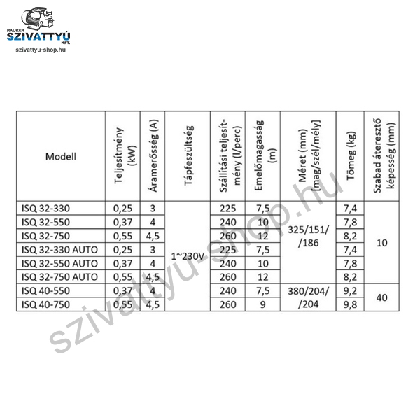 Készüléktípus: merülőszivattyú tiszta és enyhén szennyezett vízhez.