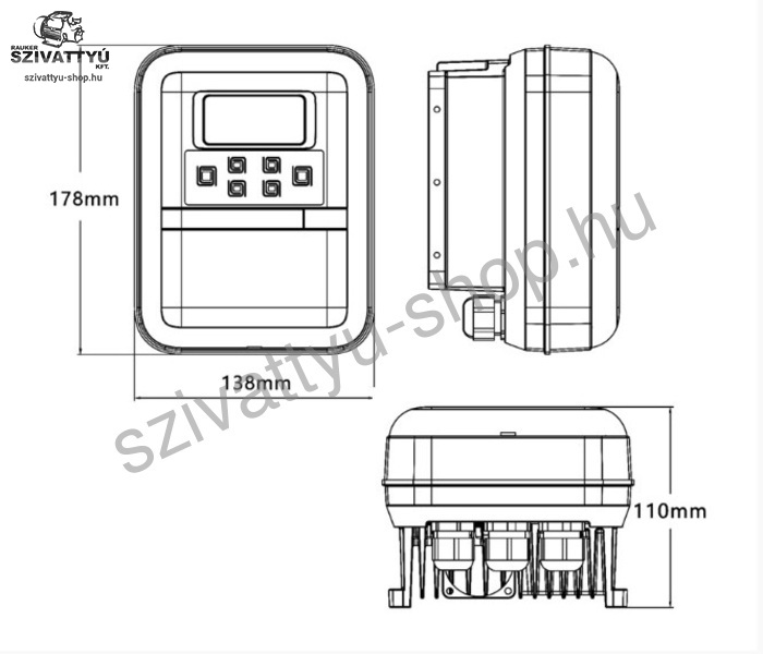 Intelligens szivattyú vezérlő, frekvenciaváltó 230V-os szivattyúkhoz 750-2200W közötti motor teljesítményhez, maximum 10,5 A-ig.