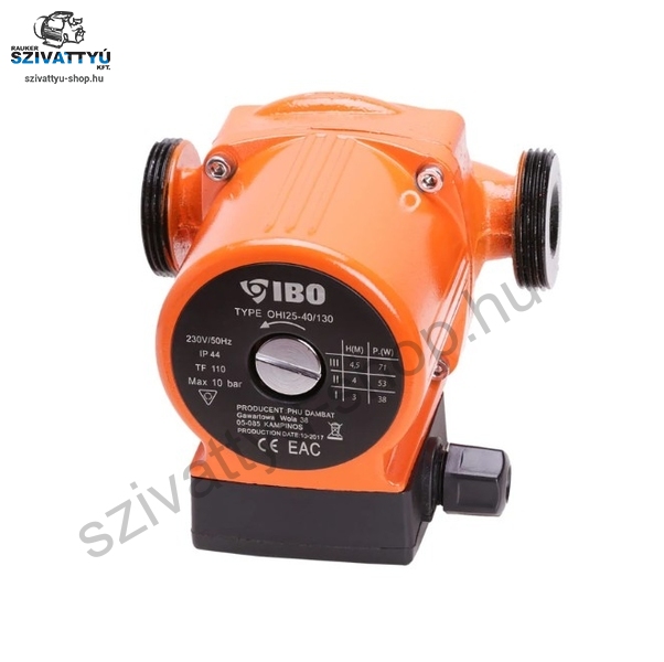 A szivattyú 3 sebességes motorral rendelkezik a működési paraméterek beállításához a felhasználó igényei szerint. Az IBO OHI 25-40/130 öntöttvas testtel kapható. A kialakításnak és a felhasznált kiváló minőségű anyagoknak köszönhetően a szivattyú nagyon csendes működés közben.