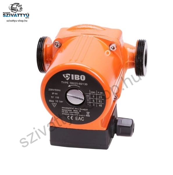 A szivattyú 3 sebességes motorral rendelkezik a működési paraméterek beállításához a felhasználó igényei szerint. Az IBO OHI 25-60/130 öntöttvas testtel kapható. A kialakításnak és a felhasznált kiváló minőségű anyagoknak köszönhetően a szivattyú nagyon csendes működés közben.