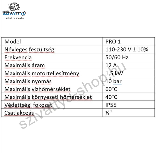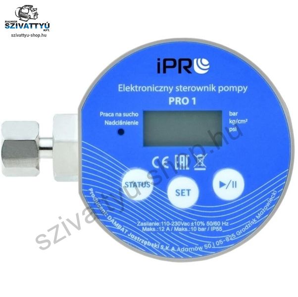 Az IPRO IQ PRO 1 egy kis méretű, kompakt kivitelű digitális nyomáskapcsoló, mely digitális kijelzővel rendelkezik. Kiválóan felhasználható a hidrofor tartályos házi vízellátó rendszerekben, maximum 1500W-os motor teljesítményig. A bekapcsolási nyomás és a kikapcsolási nyomás külön-külön állítható, így jól igazítható az aktuális kívánalmaknak. A be- és kikapcsolási nyomás közvetlenül a kezelőpanelen állítható be, az egyszerű és kényelmes vezetékezés pedig lerövidíti a szerelési időt. Az IPRO IQ PRO 1 digitális nyomáskapcsoló alkalmas 2 szivattyús rendszerek vezérléséhez is (második vezérlővel történő együttműködéssel, szinkronizált működés). A termékre 3 év gyári garanciát vállalunk. Szárazon futás és szivárgás elleni védelem is rendelkezésre áll, mely a menü pontok között megtalálható és beállítható.