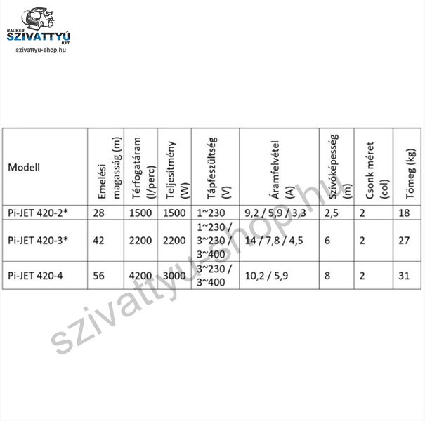 Az IPRO IQ-PRO PI-JET 420-4 400V tulajdonságai, valamint műszaki információi