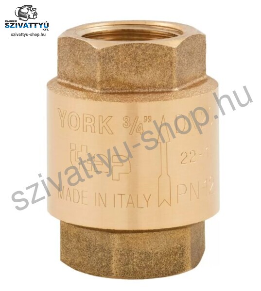 ITAP York visszacsapószelepek egyirányúak. Ez azt jelenti, hogy csak egy irányba engedik át a folyadékot, ezért szerelje fel úgy, hogy a testen lévő nyíl ugyanabban az irányban legyen, mint a folyadék áramlása. Az Itap York 4 coll visszacsapószelep teste, háza CW617N bronzból készül. A belsejében található rugó AISI 302 rozsdamentes acélból készül. A York visszacsapószelep tengelye és tányárja, valamint alátétje erős polimerből készül, a tányér alatti tömítés pedig NBR. Az Itap York 4 coll visszacsapószelep bármilyen pozícióban felszerelhető, belsőmenetes csatlakozással rendelkezik. Nyomástűrése 8 bar. Felhasználható vízellátó rendszerek, fűtési, légkondicionáló berendezések, esetében. Működési hőmérséklet tartomány: -20- +100°C