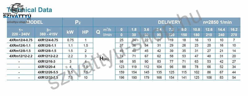A Leo 4XR 12/26-5,5 műszaki adatai: