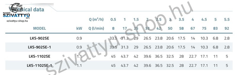 A Leo LKS-1102SE automata ásottkút szivattyú műszaki adatai: