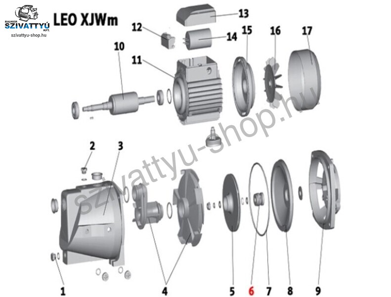 A termékképen látható (6) számú Leo XJWm 60/41 szivattyú alkatrész.