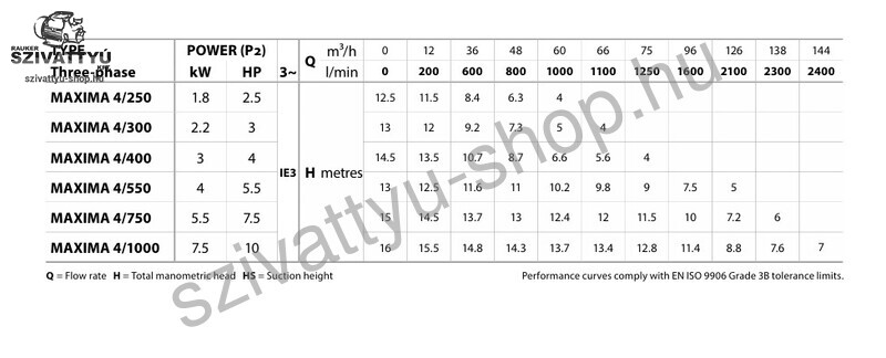 Manometrikus szívómélység 4 m-ig (HS)