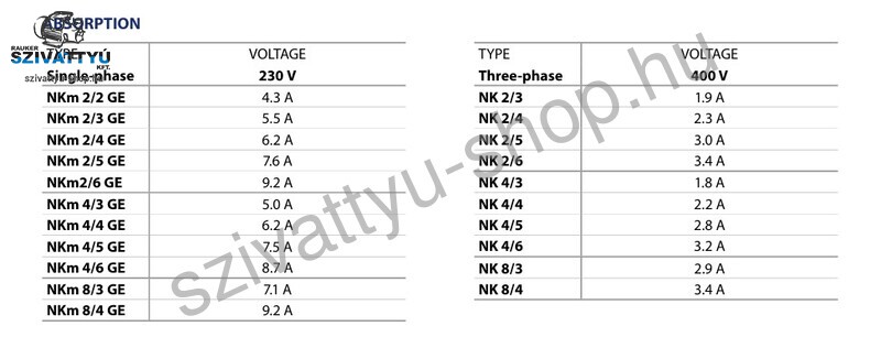 Maximális nyomó magasság: 63 méter (6,3 bar)