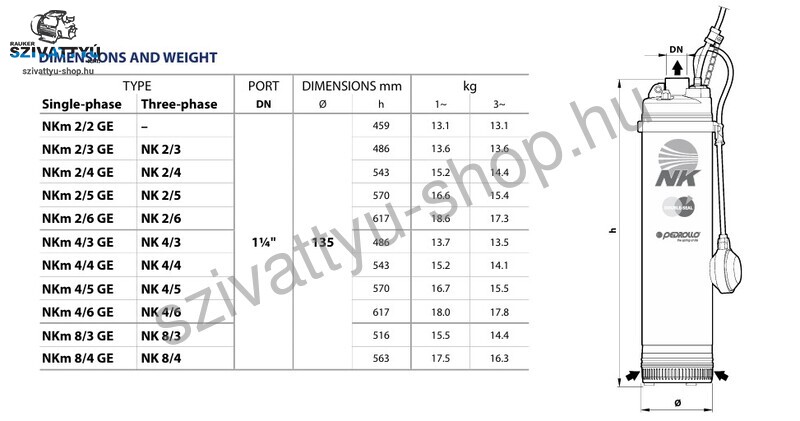 A Pedrollo NKm ásottkút szivattyú család nagy hatásfokuk és megbízhatóságuk következtében kifejezetten népszerű és megbízható szivattyú.
