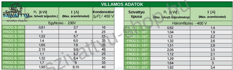 Úszókapcsolóval és gyári 20 méteres tápkábellel, 230V-os egyfázisú motorral, tekercsbe integrált hővédelemmel. Kettős csúszógyűrűs tömítés olajkamrával leválasztva jó kopásállósággal a motortér védelme érdekében.