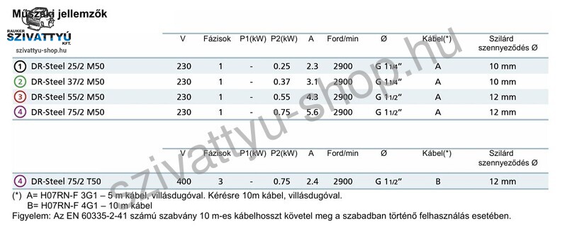 érintkező V-gyűrűvel. Szerkezet: króm-nikkel AISI 304 rozsdamentes acél. A Zenit DR Steel 25/2 GM vízmentesítő szivattyú tiszta vízre használható. Lebegő szilárd szennyeződés maximum átmérője: 10 mm. Ideális választás a vizes helyiségek vízmentesítésére, lakossági és ipari felhasználásra egyaránt. A szintkapcsolónak köszönhetően szűkebb helyeken is biztonságosan használható.